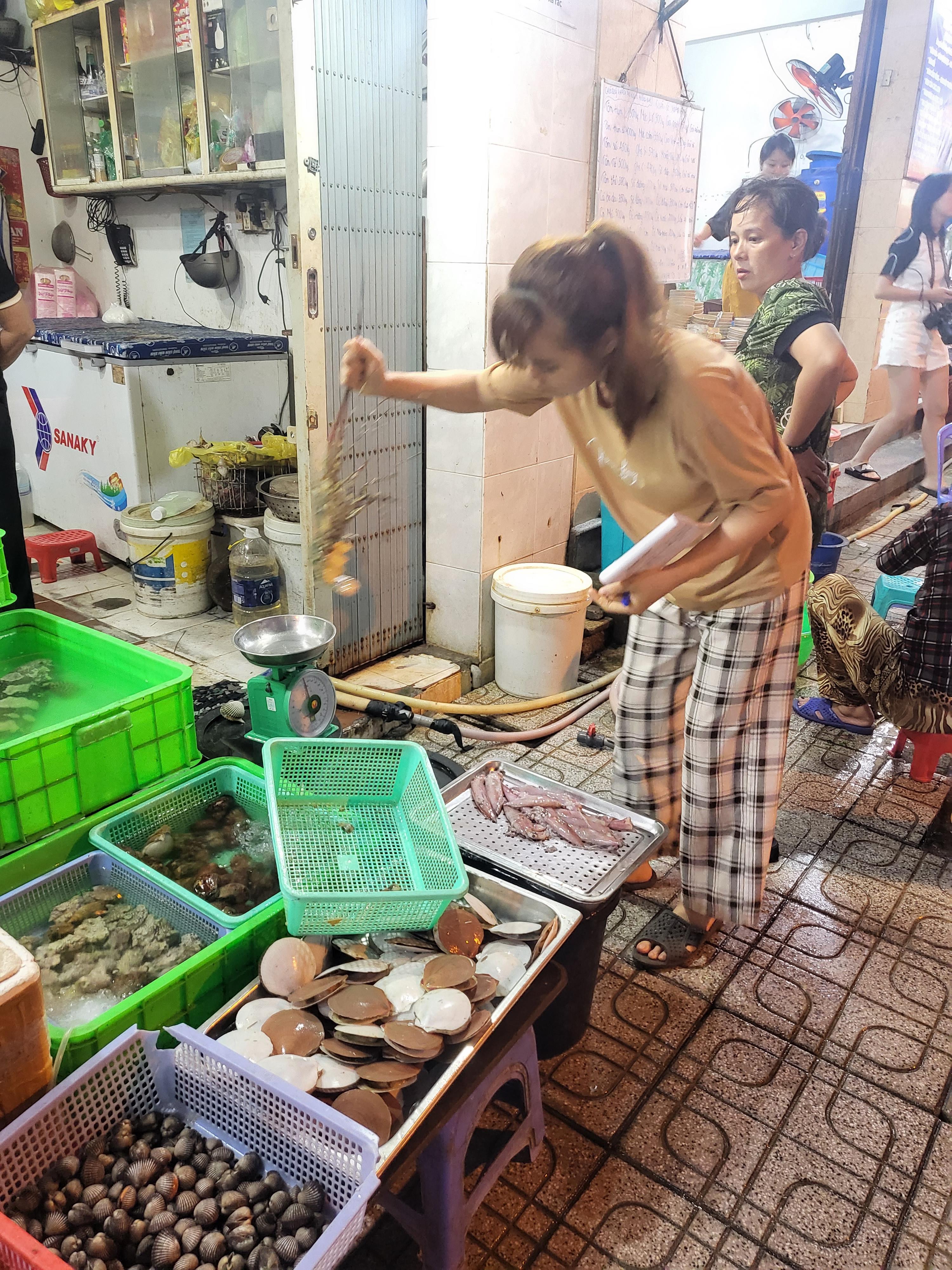 베트남 가면 꼭 먹어야할 맛조개예요 _// 마지막날도 또 먹으려고 숙소 주변 가게에서 어디갈까 고르고 했었는데 마지막날은 극심한 배탈로 ㅠㅠ 해산물은 패스했다는 ㅠㅠㅠ 아마 이날 해산물을 먹고 3일차부터 날이 맑아져서 얼음 들어간 음료를 너무 많이 마셔서 배탈이 점점 심해졌던것 같아요 ㅠ