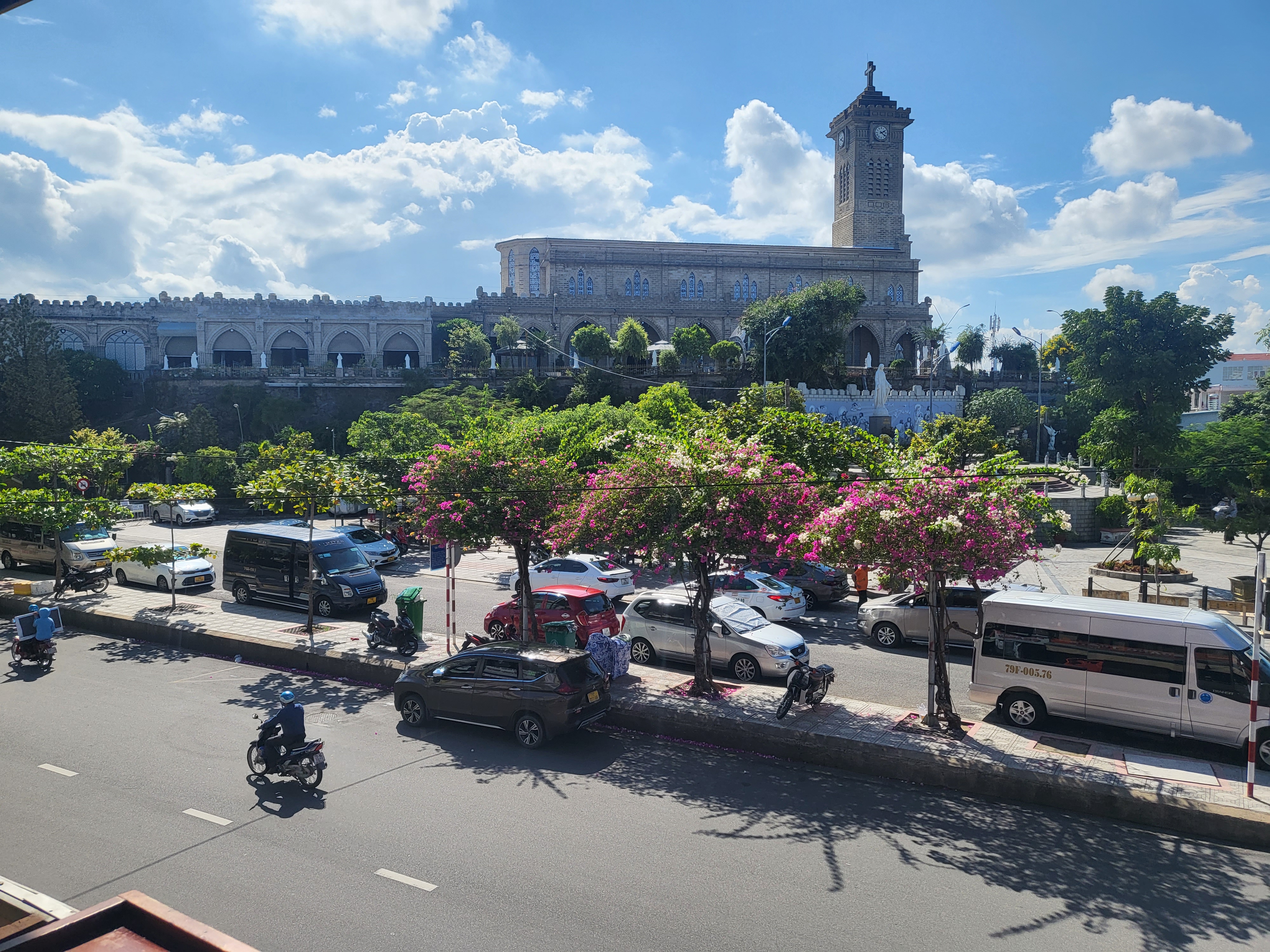 나트랑자유여행 3일차의 가장 좋았던곳은 나트랑대성당이었어요. 마침 날이 개어 맑은 하늘과 대성당이 너무 예뻣고 나트랑대성당 앞의 원형도로에 오토바이가 지나다니는 모습들도 다 예쁘게