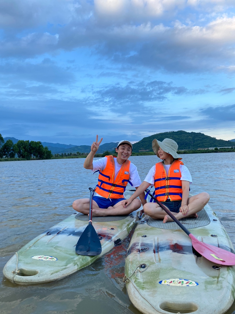 나트랑여행 까이강 패들보드 체험은 대만족 이었어요. 거의 모든 일정이 관광 위주 였기 때문에 여기저기 바쁘게 돌아다니기도 했고 정신없이 매일을 보냈었는데 잔잔한 강에서 패들보드 타면서 하늘도 보고 쉬었다 가기고 하고 노을지는 모습도 바라보니 여행 마무리로 딱 좋았어요.