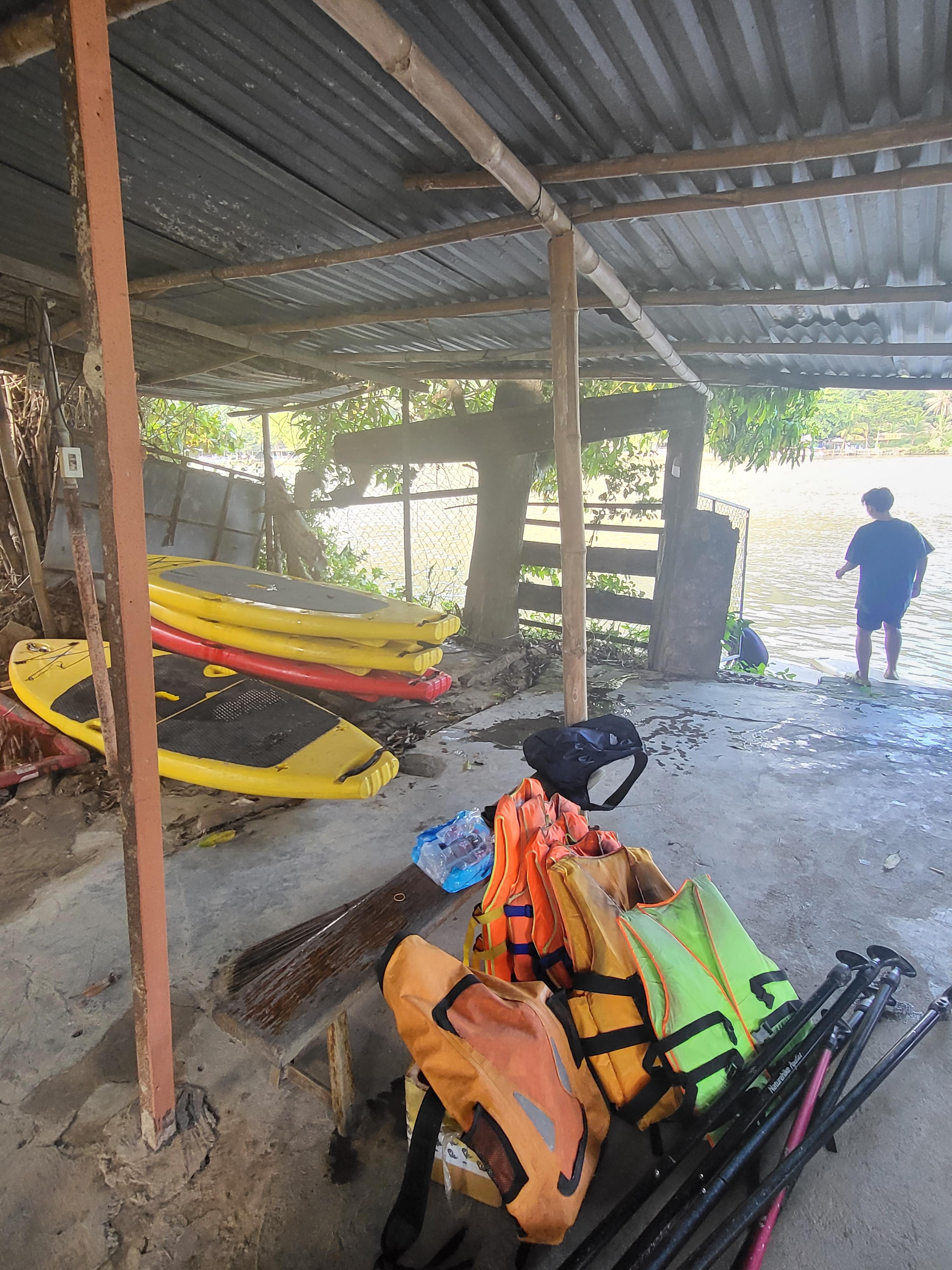 외곽지역으로 이동을 하다 까이강에 도착을 하면 패들보드 타는 곳이 나오고 여기서 구명조끼를 입고 간단하게 안전교육을 받은다음 어디까지 갔다가 돌아오는지 설명을 해주세요.