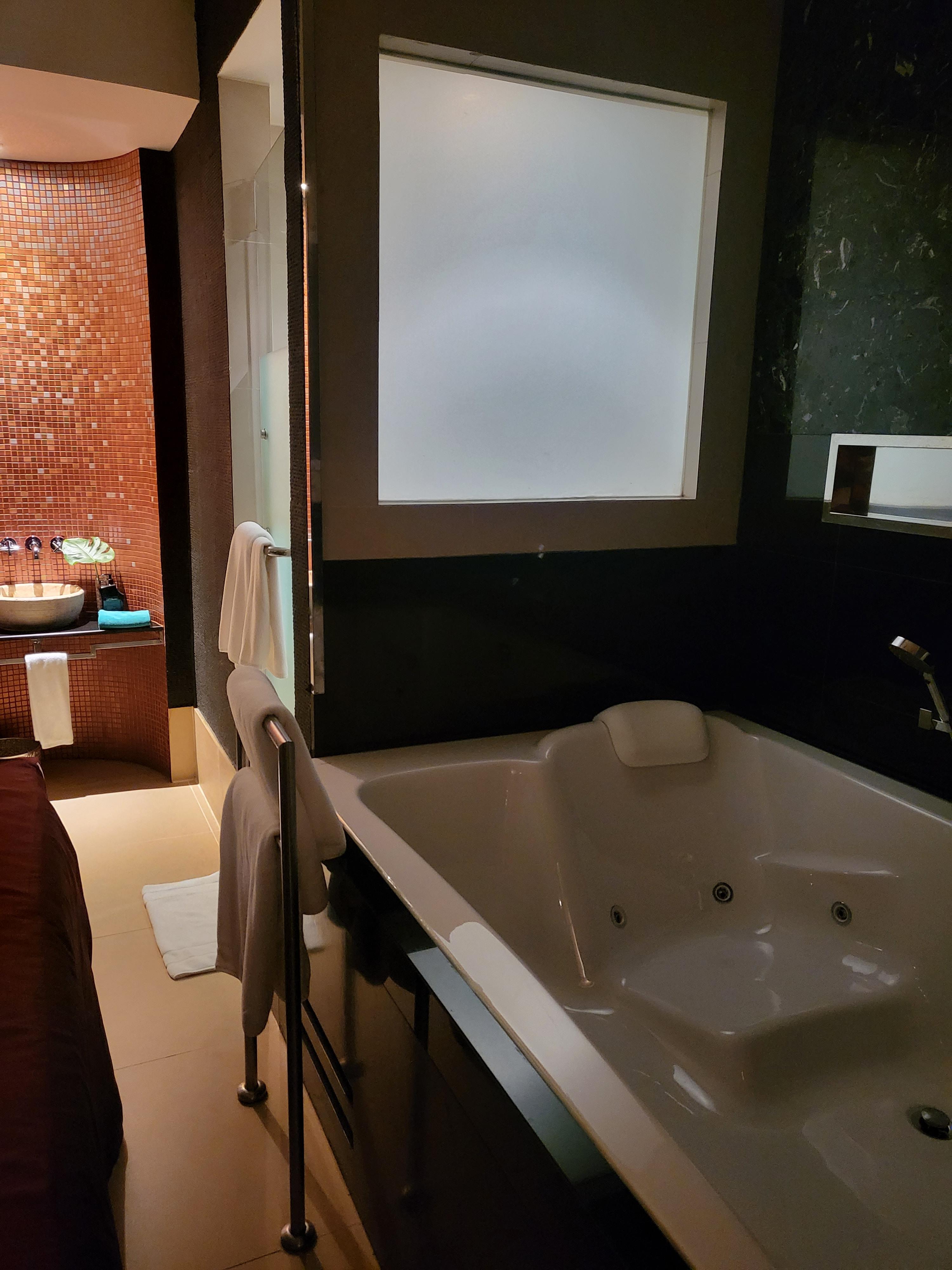 태국호텔 반얀트리방콕 욕실 사이즈도 굉장히 넓게 준비되어 있어요. 욕조 안쪽으로 별도 샤워부스가 있어서 욕실이나 욕조 모두 편하게 사용할 수 있어요.