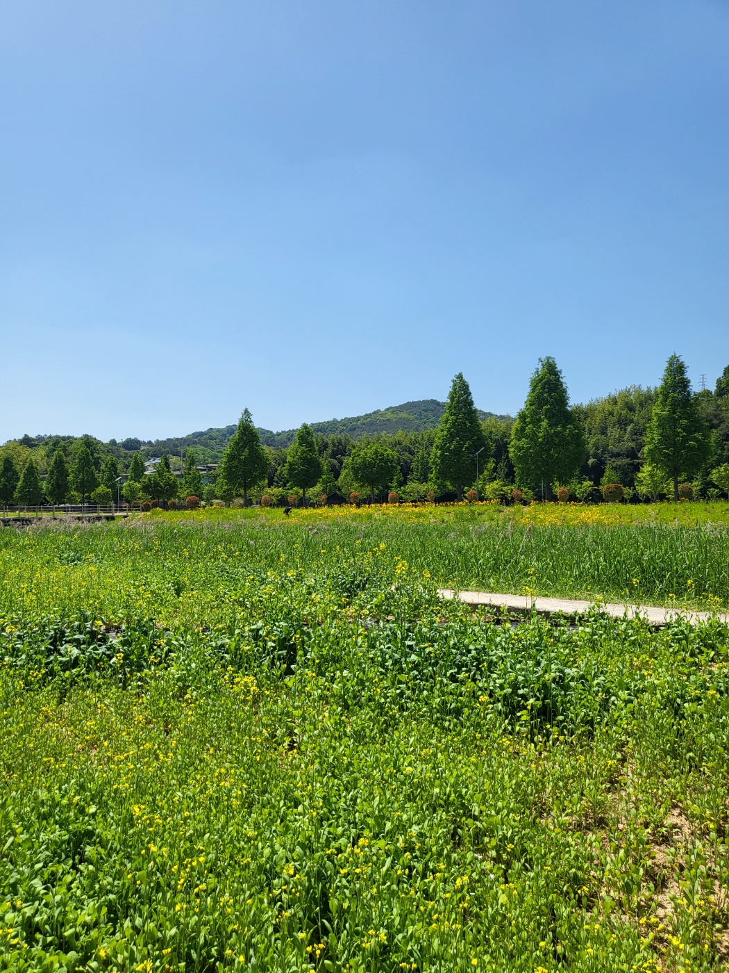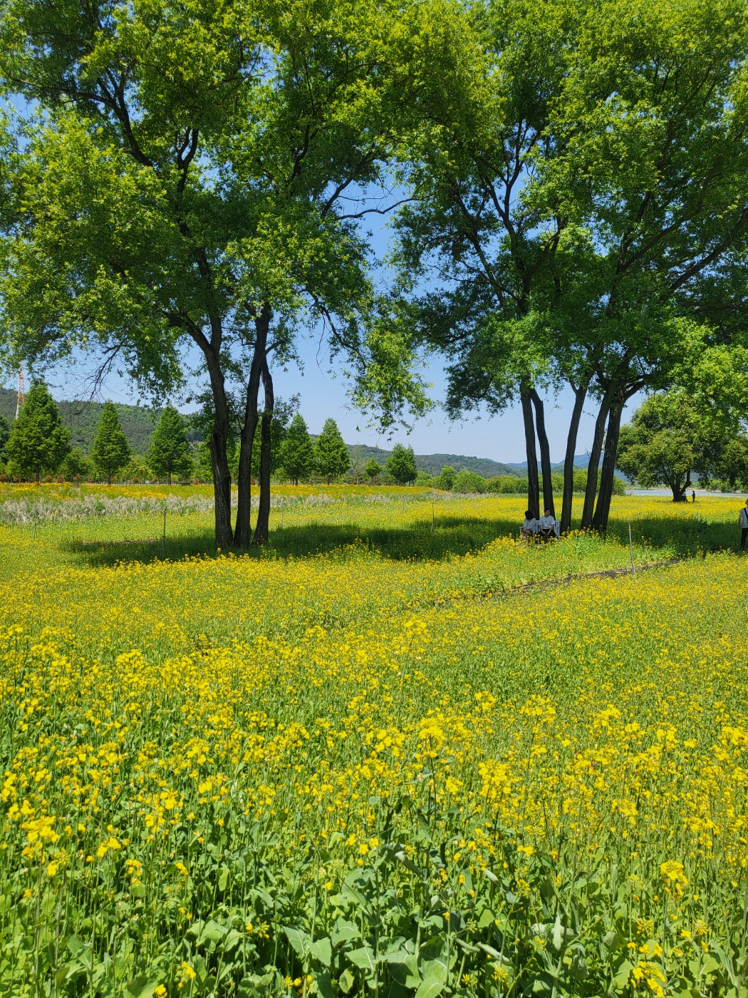 유채꽅밭도 규모가 꽤 크고 나무들과 조화가 너무 좋아서 아름다운 풍경을 감상하고 왔어요. 작약꽃밭에 사람이 거의다 있기 때문에 이곳에는 사람도 많이 없이 한적해서 더 좋고 천천히 걸으며 풍경 보기 좋았어요.