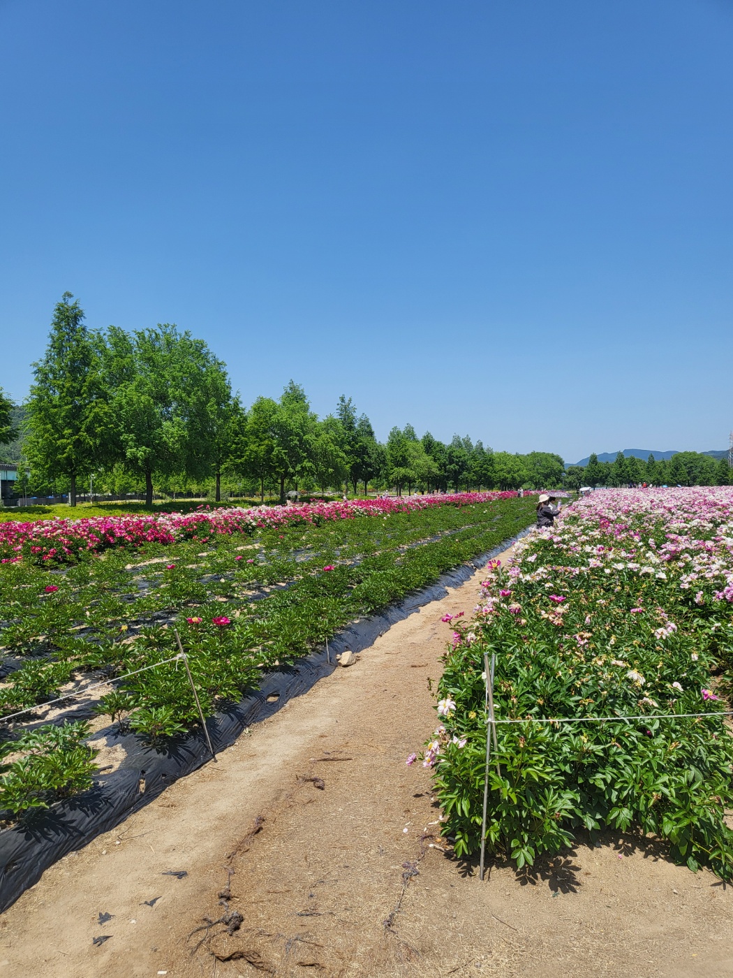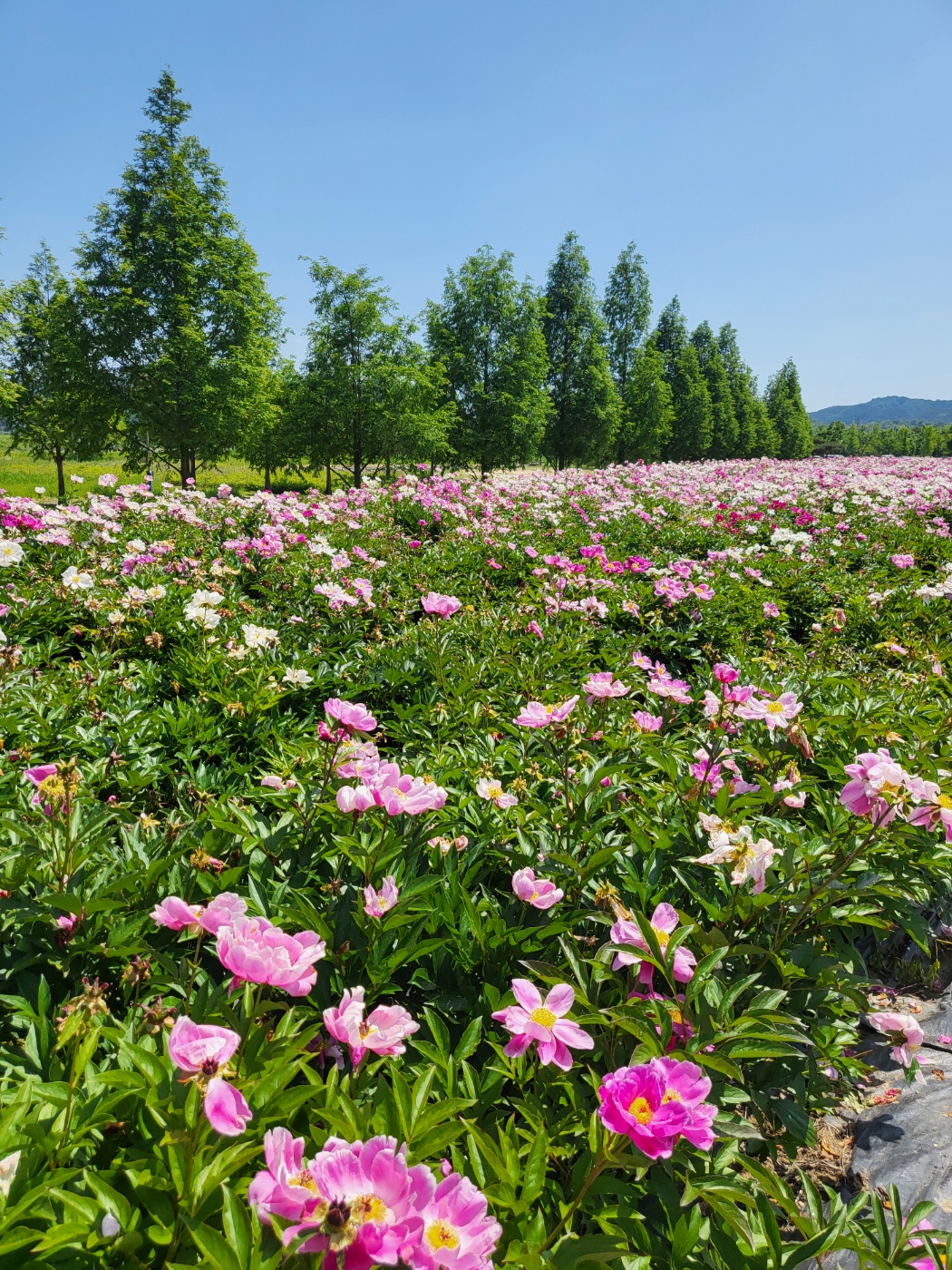 핫들생태공원 작약 꽃밭은 처음 가봤는데 주차장에서 내리자마자 너무 놀랐어요. 이렇게 클지 생각을 못하고 그냥 작약을 좋아해서 가봐야지 하는 가벼운 마음이었는데, 너무 크고 꽃들이 다 만개해 있어서 너무 좋았어요.