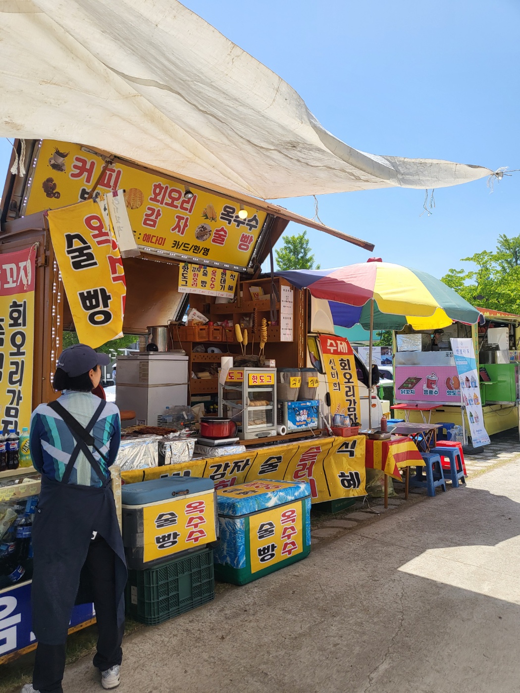 합천 핫들생태공원 푸드트럭에는 회오리감자, 옥수수, 술빵 그리고 아이스크림 커피등을 판매하고 있어요.