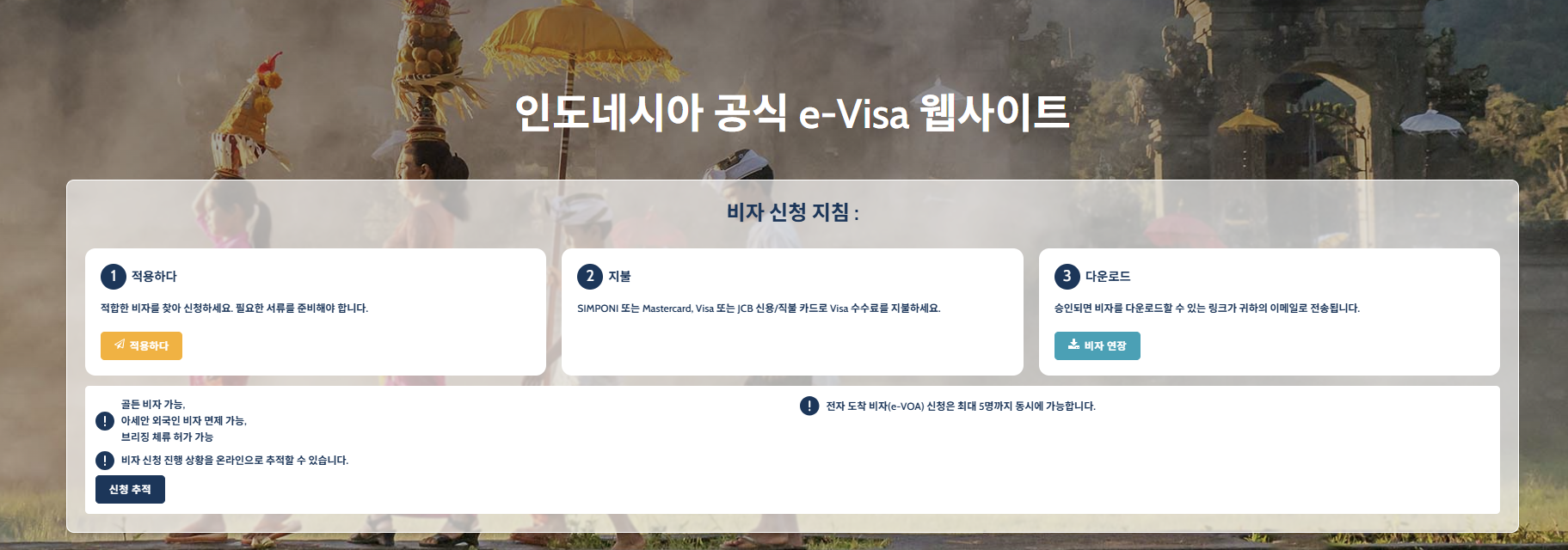 1. 인도네시아 발리 전자 비자 홈페이지 (아래링크 참고)