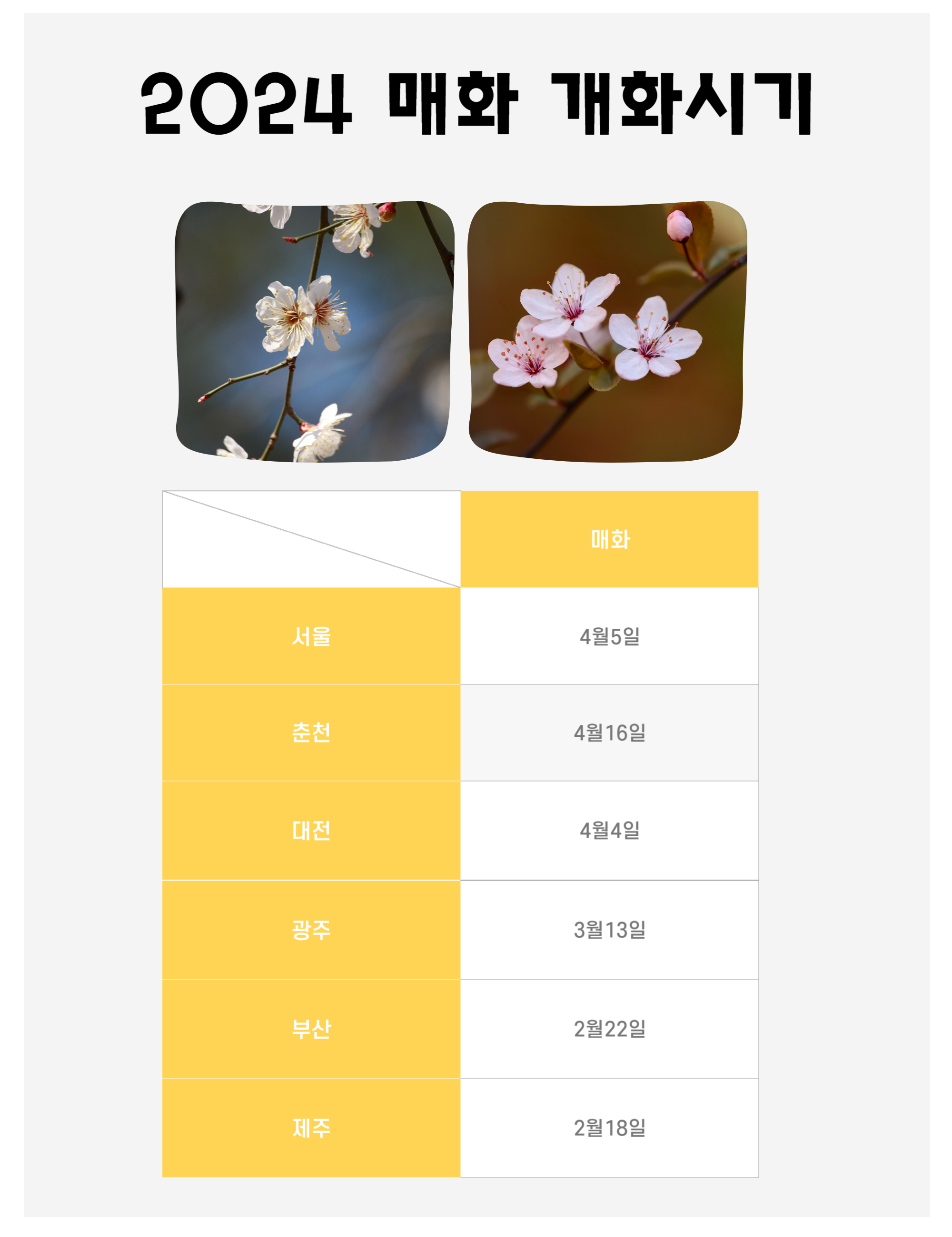 매화개화시기, 어디로 떠날지 즐거운 계획 세우는데 도움이 되었으면 합니다 ^-^
